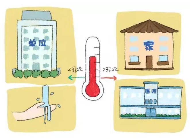 進(jìn)入辦公樓前自覺(jué)接受體溫檢測(cè),體溫正??扇霕枪ぷ?,并到衛(wèi)生間洗手。若體溫超過(guò)37.2℃,請(qǐng)勿入樓工作,并回家觀察休息,必要時(shí)到醫(yī)院就診。