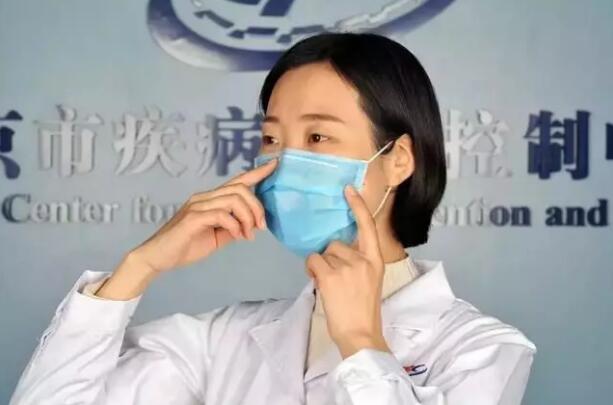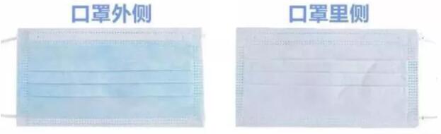注意一次性外科口罩有里外之分,淺色面有吸濕功能,應(yīng)該貼著嘴鼻,深色面朝外。