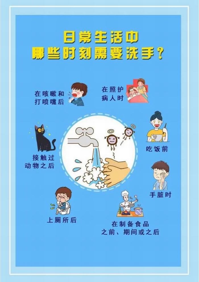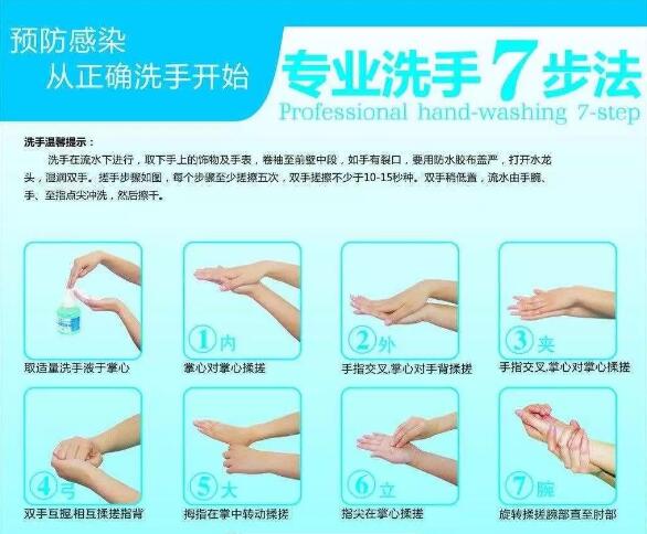 使用肥皂(洗手液)和流水搓手時(shí)間應(yīng)不少于 20 秒。謹(jǐn)記洗手七字口訣。擦手時(shí)最好使用一次性擦手紙,如果沒(méi)有,用潔凈的毛巾擦拭,毛巾變濕時(shí)需及時(shí)更換。