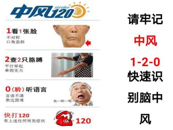 一是國(guó)家衛(wèi)生健康委腦防委、中國(guó)卒中學(xué)會(huì)推薦的“1-2-0”三步識(shí)別法: