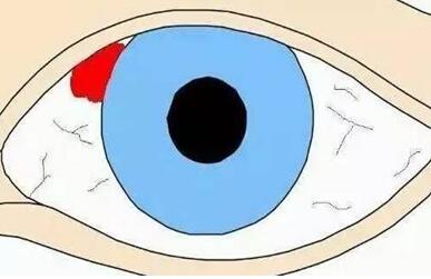 醫(yī)學(xué)上又稱“球結(jié)膜下出血”,是因?yàn)檠矍虮砻娴那蚪Y(jié)膜血管破裂造成出血。由于球結(jié)膜透明,出血后眼白部分可明顯看到一片鮮紅色。