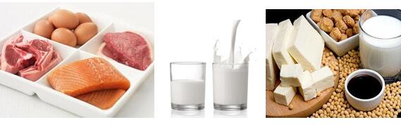 蛋白質(zhì)廣泛存在于動(dòng)植物性的食物中,其中水產(chǎn)類、畜禽肉類、蛋類、乳類等動(dòng)物性食物中所含的蛋白質(zhì)為動(dòng)物性蛋白;谷薯類、豆類及制品、蔬菜水果類及堅(jiān)果等植物性食物中的蛋白質(zhì)即為植物性蛋白。動(dòng)物蛋白不低于蛋白質(zhì)總量的33%,同時(shí)補(bǔ)充一定量豆類蛋白。多選用大豆、魚(yú)、禽、瘦肉等優(yōu)質(zhì)蛋白。中國(guó)居民膳食指南(2016)推薦成人每天平均攝入水產(chǎn)類40-75克,畜禽肉40-75克,蛋類40-50克,平均每天攝入魚(yú)、禽、蛋和瘦肉總量120-200克。