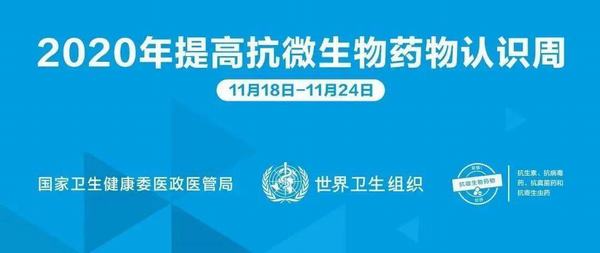 2020年5月,世界衛(wèi)生組織、聯(lián)合國糧食及農(nóng)業(yè)組織和世界動(dòng)物衛(wèi)生組織召開會(huì)議,決定將“抗菌藥物”名稱改為 “抗微生物藥物”,將每年11月的第三周定為“世界提高抗微生物藥物認(rèn)識(shí)周”。為提高全社會(huì)合理使用抗微生物藥物的意識(shí)和水平,國家衛(wèi)生健康委醫(yī)政醫(yī)管局在11月18日-24日組織開展“2020年提高抗微生物藥物認(rèn)識(shí)周”活動(dòng),今年的主題是“團(tuán)結(jié)起來保護(hù)抗微生物藥物”。