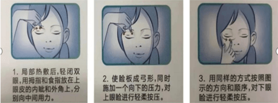 第二步:熱敷,最簡單可行的方法就是將干凈毛巾浸泡在40度左右的熱水中,再覆蓋在眼皮上。但需要注意的是,掌握好溫度,不是越高越好。時間15~20分鐘足夠,也不是越長越好。要防止出現(xiàn)低溫燙傷。當使用毛巾不方便的時候,熱敷蒸汽眼罩是不錯的選擇。