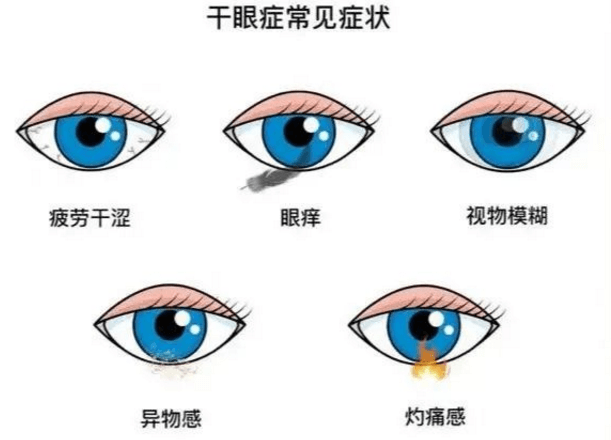 包括眼睛干澀、容易疲倦、眼癢、有異物感、痛灼熱感、分泌物黏稠、怕風(fēng)、畏光、對(duì)外界刺激很敏感。