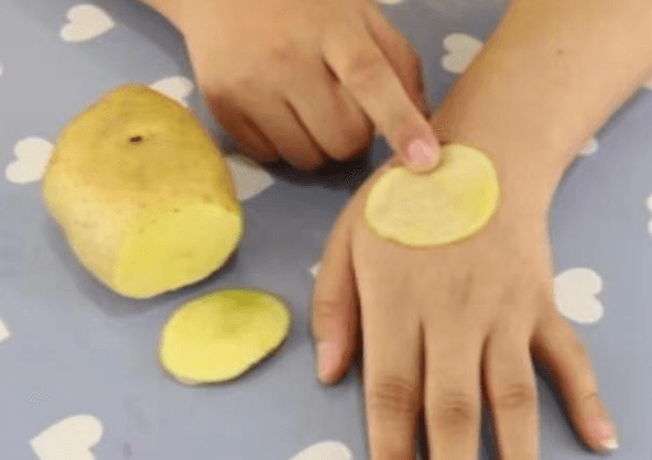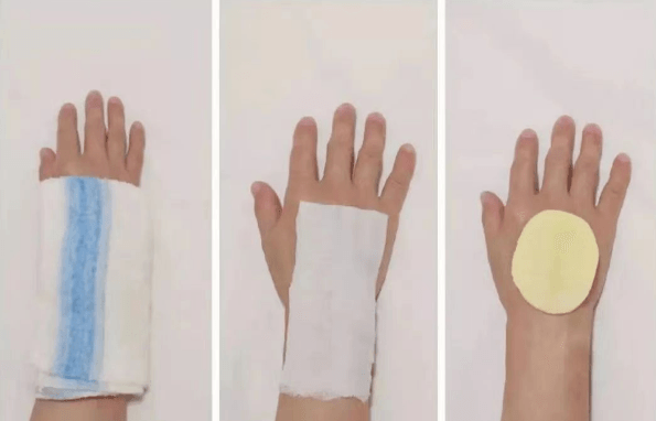 (2)將新鮮土豆片清洗干凈,切成2~3mm厚的薄片涂于患處。最好是土豆片與皮膚充分接觸,不要有懸空,必要時可用保鮮膜輕輕固定。每1~2h更換土豆片1次,確保土豆片的汁液持續(xù)的滲透于組織中。每次更換前,注意觀察局部皮膚變化,間隔30min再進(jìn)行下一次外敷。