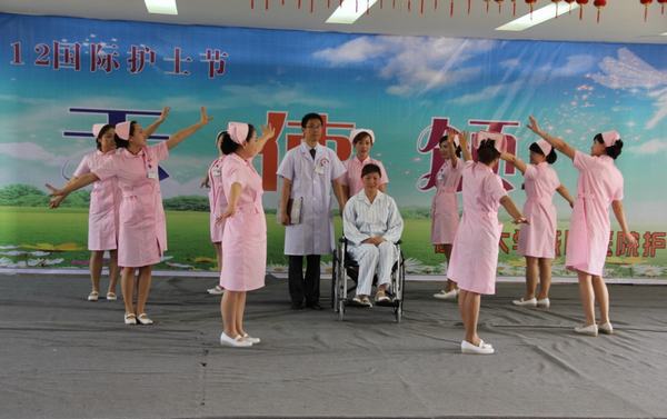 慶祝節(jié)目精彩紛呈,心臟系統(tǒng)的表演劇《我是一名護(hù)士》,從護(hù)士職業(yè)禮儀的站、坐、行、蹲、推治療車、持病歷夾等方面進(jìn)行了護(hù)士禮儀展示,在優(yōu)美的背景音樂襯托下,莊重而優(yōu)雅,標(biāo)準(zhǔn)而婀娜的禮儀展示,如一場美妙的音樂劇,贏得了觀眾的陣陣掌聲。秦腔表演《十五貫》片段,展示了我們護(hù)理人的多才多藝,其哥哥的板胡伴奏更為節(jié)目錦上添花。腦血管病系統(tǒng)帶來了舞蹈《印度風(fēng)情》,病房里,白衣天使展現(xiàn)的是她們輕巧嫻熟的技術(shù),而舞臺上的她們舞姿輕盈優(yōu)美,臺下掌聲和歡呼聲此起彼伏。隨后在磅礴的音樂伴奏下,四位護(hù)士緩緩走上舞臺,此刻的她們美麗、純潔、高貴、神圣,燕尾帽下的張張笑臉為我們譜寫了大愛無疆的《天使頌》。女聲獨(dú)唱將《那片?!分袌?zhí)著的情感演繹的淋漓盡致。外科系統(tǒng)精心準(zhǔn)備了三句半《護(hù)士真善美》,你看,她們敲鑼打鼓、氣勢驕人,卻用簡捷、詼諧的語言,將外科各科職業(yè)的辛酸和快樂表達(dá)的活靈活現(xiàn),時(shí)而感人至深,時(shí)而令人捧腹大笑。內(nèi)科系統(tǒng)演繹的小品《招聘新時(shí)代》,將大會推向了高潮,演員們精神飽滿、配合默契、詼諧幽默,將招聘時(shí)的各種狀況表演的惟妙惟肖,贏得觀眾的頻頻尖叫聲和喝彩聲,讓人不禁聯(lián)想起了自己當(dāng)年應(yīng)聘的情景。外科系統(tǒng)、內(nèi)科系統(tǒng)的娛樂節(jié)目:《快樂傳真》和《蘿卜蹲》更是讓整個(gè)會場充滿了開懷的笑聲,成了歡樂的海洋。