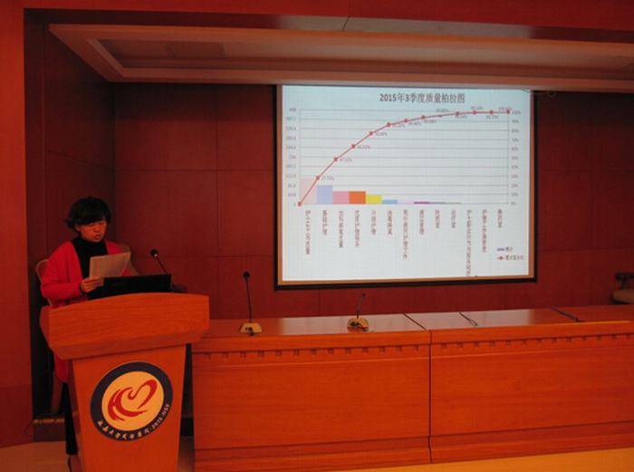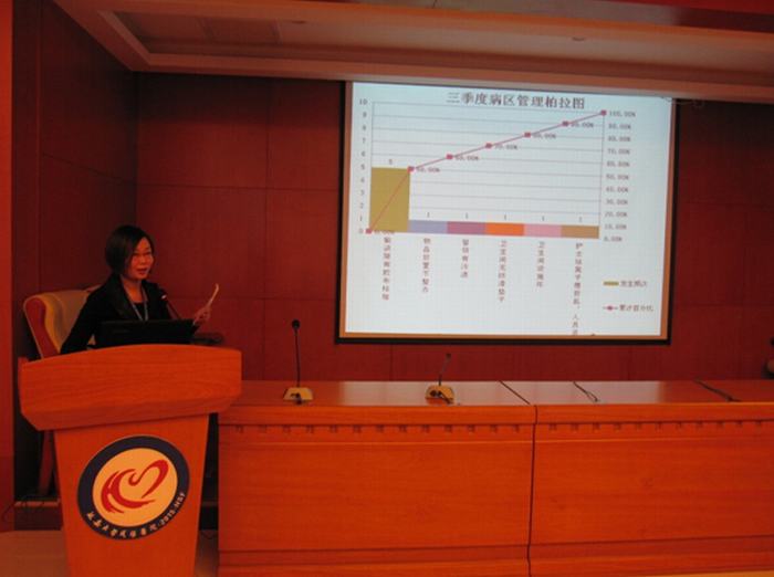 護理質量持續(xù)改進,首先要明白影響質量的因素,抓住首要問題。充分利用管理工具,從三季度開始,改變護理質量反饋形式。護理部徐京華主任鼓勵大家運用質量工具進行護理質量結果分析,要求各管理委員會將護理質量檢查結果運用柏拉圖等管理工具進行分析,以PPT形式進行匯報。2015年10月23日下午,在心臟病院二十樓第一學術廳進行三季度護理質量檢查結果匯報。護理質量管理委員會全體成員參加。各質檢組長將本組檢查存在問題做成柏拉圖,展示存在問題的頻次、所占比例,分析影響質量80%的那幾個問題,將柏拉圖運用于護理質量分析中,強調用數據說話。