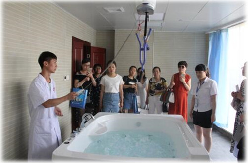 學(xué)習(xí)班在張美霞老師的生動講述下開始,張老師用30多年的臨床經(jīng)驗為我們講述了康復(fù)護(hù)理原則、康復(fù)護(hù)理的方法、體位擺放、關(guān)節(jié)活動乃至卒中飲食,并做現(xiàn)場演示。楊峰老師的營養(yǎng)管理策略更是將卒中患者吞咽障礙的營養(yǎng)問題進(jìn)行更深一步的剖析,從營養(yǎng)不良篩查、營養(yǎng)評估到營養(yǎng)支持,展現(xiàn)了吞咽障礙患者營養(yǎng)管理的重要性。其他各位老師從卒中患者的康復(fù)治療進(jìn)展,卒中并發(fā)癥誤吸、偏癱,康復(fù)期的語言訓(xùn)練、心理護(hù)理,進(jìn)行詳盡的講述,課件圖文并茂,并現(xiàn)場示教動作要領(lǐng),為我們廣大學(xué)員帶來康復(fù)護(hù)理的饕餮大餐。同時,正值我院康復(fù)水療項目開展,會后安排學(xué)員進(jìn)行參觀。