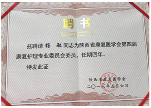 2018年5月5日-6日,我院楊敏主任、宋春蘭總護(hù)士長受邀參加陜西省康復(fù)醫(yī)學(xué)會(huì)第四屆康復(fù)護(hù)理專業(yè)委員會(huì)換屆會(huì)議暨實(shí)用康復(fù)護(hù)理技術(shù)及新進(jìn)展學(xué)習(xí)班,并成功當(dāng)選為陜西省康復(fù)醫(yī)學(xué)會(huì)康復(fù)護(hù)理專業(yè)委員會(huì)委員。
