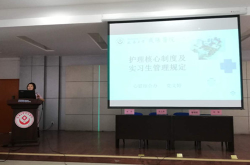 黨文婷總護(hù)士長就《實(shí)習(xí)生管理規(guī)定及相關(guān)護(hù)理核心制度》分別從法律法規(guī)、我院護(hù)理核心制度、實(shí)習(xí)生要求及規(guī)范、請(qǐng)假管理規(guī)定等方面進(jìn)行講解,要求同學(xué)們嚴(yán)格執(zhí)行護(hù)理核心制度,認(rèn)真遵守醫(yī)院相關(guān)規(guī)定;護(hù)理部奉明老師從《護(hù)士執(zhí)業(yè)禮儀與醫(yī)德醫(yī)風(fēng)規(guī)范》中教會(huì)大家如何成為一名講文明、懂禮貌、有內(nèi)涵、高素質(zhì)的優(yōu)秀護(hù)士;羅建利護(hù)士長針對(duì)《護(hù)患溝通技巧》闡述了護(hù)患溝通的方法、技巧、時(shí)機(jī),指導(dǎo)大家在今后的臨床工作中如何實(shí)施有效的護(hù)患溝通;董朝妮護(hù)士長對(duì)于《如何更好的進(jìn)行臨床護(hù)理實(shí)習(xí)》結(jié)合自身工作學(xué)習(xí)經(jīng)驗(yàn),教會(huì)大家在有限的時(shí)間內(nèi)學(xué)到更多的知識(shí),為今后走上護(hù)理崗位奠定基礎(chǔ);劉敏護(hù)士長從《護(hù)理工作安全隱患》中圍繞患者十大安全目標(biāo),重點(diǎn)對(duì)護(hù)理實(shí)習(xí)生在實(shí)習(xí)過程中易出現(xiàn)的問題、防范措施等方面進(jìn)行講解。