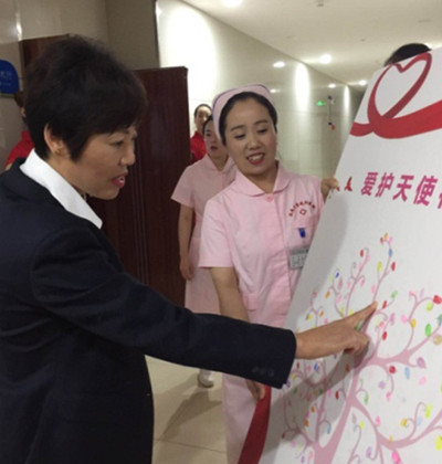 啟動儀式以共建愛心樹拉開帷幕,與會人員在愛心樹上用手印簽到,留下神圣的印記,代表著護理團隊的欣欣向榮與蓬勃發(fā)展。首先由李衛(wèi)軍董事長為大會致辭,他表示愛護天使行動項目能落戶我院是我們的榮幸與驕傲。在我們喜迎建院70周年之際,“愛護天使行動—臨床護理人員心理關(guān)懷項目”在我院落地開花。希望通過此項目的實施,能夠提高護士的幸福感知力,培養(yǎng)護士積極向上的心態(tài),幫助護士認識到健康職業(yè)心理的重要性,以提高醫(yī)療服務(wù)效率及滿意度,為“健康中國”貢獻力量。