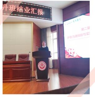 結(jié)業(yè)匯報典禮現(xiàn)場,護(hù)理部楊敏主任做了結(jié)業(yè)致辭。強調(diào)了開展提升班的意義,對第一屆提升班結(jié)業(yè)后歷時一年工作中,所取得的成果表示肯定。對本屆提升班的所有教員、學(xué)員在教與學(xué)中付出的辛苦與努力表示感謝。楊主任殷切的希望本屆的各位學(xué)員在結(jié)業(yè)后,像“火種”一般帶動身邊的同事一起努力,一起向上。