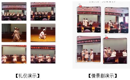 在第二環(huán)節(jié)的匯報演示中:“智、慧、禮、儀、夢、想、毅”7個團(tuán)隊通過基本禮儀、站姿、坐姿、蹲姿、電話禮儀、接待禮儀等9個方面,細(xì)微深入的展示著護(hù)士禮儀風(fēng)采。得體大方,端莊整潔的白衣天使,將溝通中的語言藝術(shù)展現(xiàn)的美輪美奐,特別是我們的男護(hù)團(tuán)隊,為此次提升班增添了一抹別樣的色彩,他們陽剛中不失溫情,粗獷中不失細(xì)膩,以他們獨特的風(fēng)采展示了我們護(hù)理人不一樣的情懷。