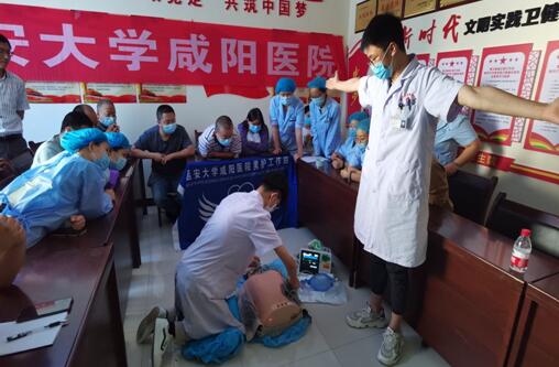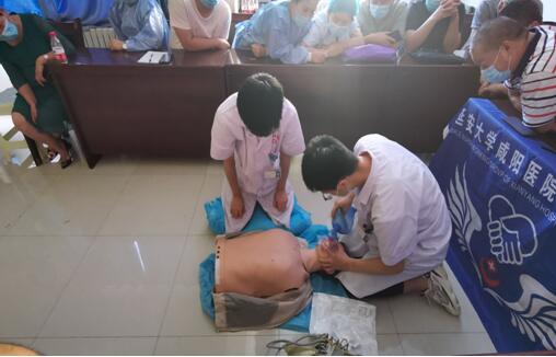 為進(jìn)一步增強(qiáng)居民健康意識,開展健康宣教走進(jìn)基層活動,2020年6月19日下午,延安大學(xué)咸陽醫(yī)院男護(hù)工作組前往正陽鎮(zhèn)衛(wèi)生院,對衛(wèi)生院的醫(yī)務(wù)人員進(jìn)行心肺復(fù)蘇術(shù)和海姆立克急救法操作指導(dǎo)。