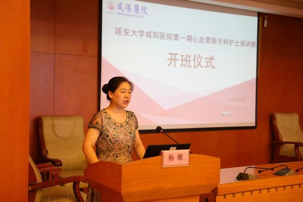 開班儀式由心血管病院黨文婷總護士長主持,邀請延安大學咸陽醫(yī)院護理部楊敏主任、心血管內(nèi)科各亞專業(yè)學科帶頭人、各病區(qū)護士長、省級??谱o士以及培訓學員50余人參加此次開班儀式。