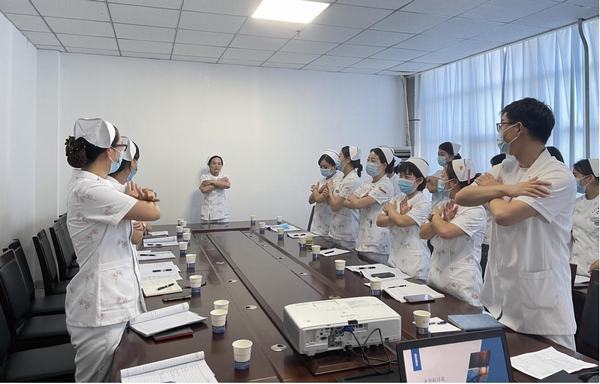 查體匯報結(jié)束后,大家就患者現(xiàn)存及潛在的護理問題和解決問題的方法進行了積極的探討與交流。圍繞患者失眠、多夢以及夜間咳嗽展開討論。精神科薛娜護士長通過對夢的解說使大家認(rèn)識到夢是情緒的宣泄,是患者潛意識的表現(xiàn),在護理過程中需關(guān)注患者的性格特點及日常生活習(xí)慣,以及心理治療對失眠的重要性,并現(xiàn)場互動學(xué)習(xí)了“樂眠操”。