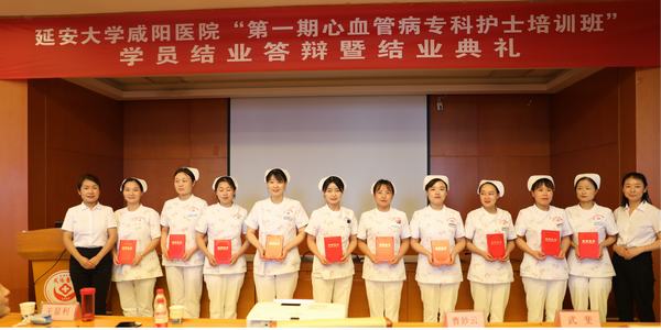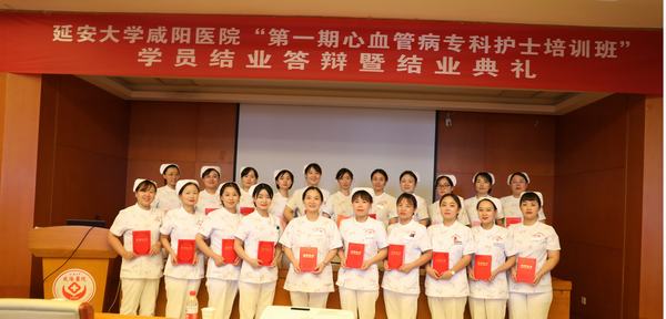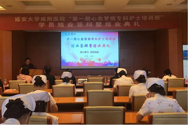 寶劍鋒從磨礪出,梅花香自苦寒來。積土而為山,積水而為海。為促進(jìn)醫(yī)院心血管??谱o(hù)理全面、協(xié)調(diào)、可持續(xù)發(fā)展,提高心血管護(hù)理專業(yè)技術(shù)水平,促進(jìn)??谱o(hù)理工作發(fā)展,2021年8月4日-9月28日,延安大學(xué)咸陽醫(yī)院心血管病院在院領(lǐng)導(dǎo)的大力支持下,舉辦了“第一期心血管病??谱o(hù)士培訓(xùn)班”。經(jīng)過26課時的理論學(xué)習(xí)、12課時的操作培訓(xùn)、為期兩周(20課時)的CCU輪轉(zhuǎn)、理論考核、多站點(diǎn)式操作考核、護(hù)理病例匯報,近2個月的學(xué)習(xí),24名學(xué)員完成了所有的學(xué)習(xí)任務(wù),以優(yōu)異的成績?yōu)樽约航涣艘环轁M意的答卷。2021年9月28日心血管??谱o(hù)士培訓(xùn)班在心臟樓第一學(xué)術(shù)廳隆重舉辦了結(jié)業(yè)答辯暨結(jié)業(yè)典禮。本次結(jié)業(yè)典禮由姚沖護(hù)士長主持,蒞臨現(xiàn)場的領(lǐng)導(dǎo)有:吳棟梁院長、左梅主任、李陽主任、王顯利主任,王芝榮主任,黨文婷總護(hù)士長、心血管病院各科護(hù)士長。