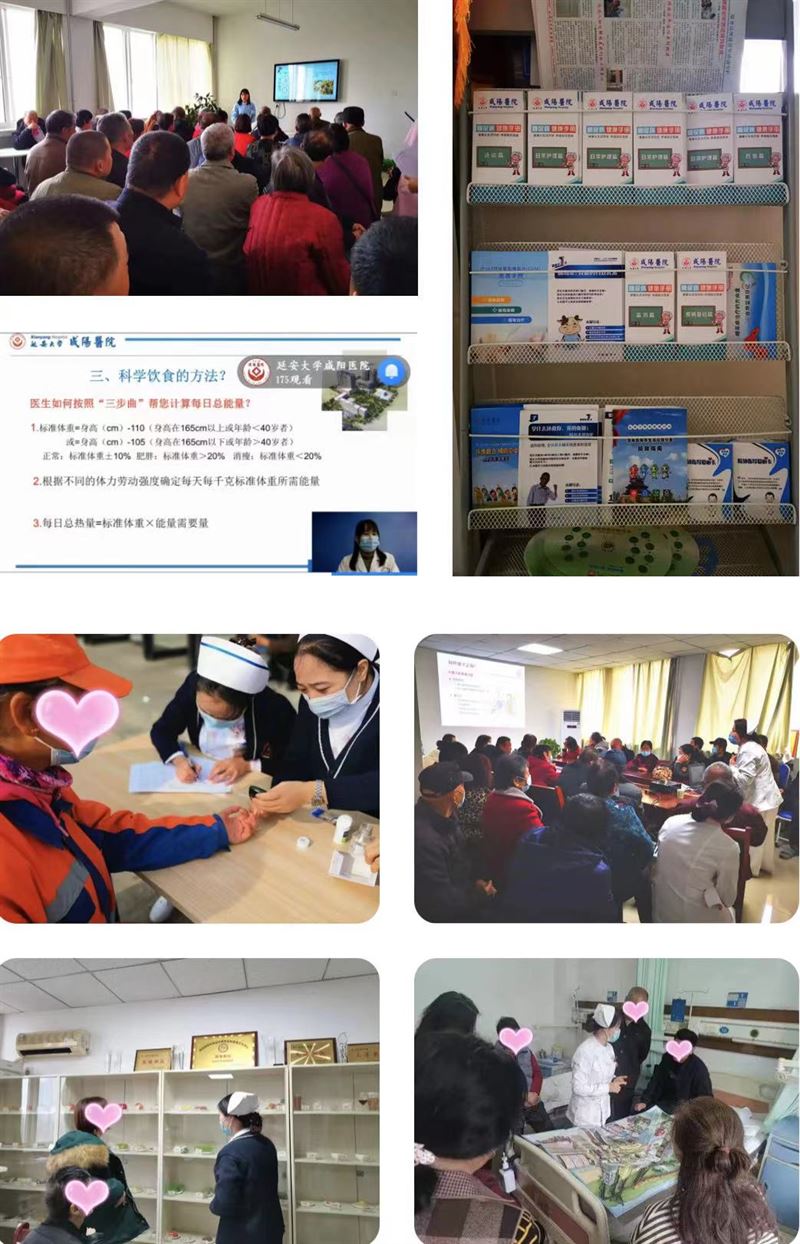 在護理部的指導(dǎo)下,結(jié)合科室特色將“糖尿病患者健康教育”做為科室護理服務(wù)品牌。在為患者提供個體化的一對一健康教育的基礎(chǔ)上開展各種形式的糖尿病健康教育,①率先在全市開展小組式“看圖對話”健康教育;②購置120種食物模型對患者進行個體化的健康指導(dǎo);③與宣傳部合作《糖尿病健康大講堂》網(wǎng)絡(luò)直播,每月1個主題;④科室每周進行一次糖尿病健康教育講座;⑤定期組織患者進行控糖經(jīng)驗分享;⑥制作糖尿健康知識系列手冊;⑦每年世糖日開展義診及講座活動,同時還積極與社區(qū)、基層聯(lián)系下社區(qū)進行義診及講座。并制定糖尿病患者的延續(xù)性護理服務(wù)流程,讓患者出院后也能得到專業(yè)的護理指導(dǎo)。