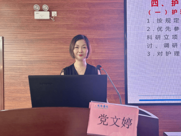 開班儀式由護理教學管理委員會委員段秋燕護士長主持,護理教學管理委員會主任委員黨文婷總護士長為開幕式致辭,她指出臨床護理教學貫穿于整個護理教育體系,是提升護士核心能力的重要手段,也是護理高質(zhì)量發(fā)展的重要途徑。希望帶教老師在今后的帶教工作中以傳道授業(yè)為己任,創(chuàng)新帶教模式,拓展帶教思維,深耕專科護理,保證患者安全,做一位有高度、有溫度的帶教老師,培養(yǎng)一批精專業(yè)、善關(guān)懷的學生,為醫(yī)院和社會培養(yǎng)更多優(yōu)秀的護理人才。隨后,黨老師憑借多年的臨床教學經(jīng)驗,就護理教學相關(guān)管理制度及帶教質(zhì)量檢查標準進行了詳細解讀。