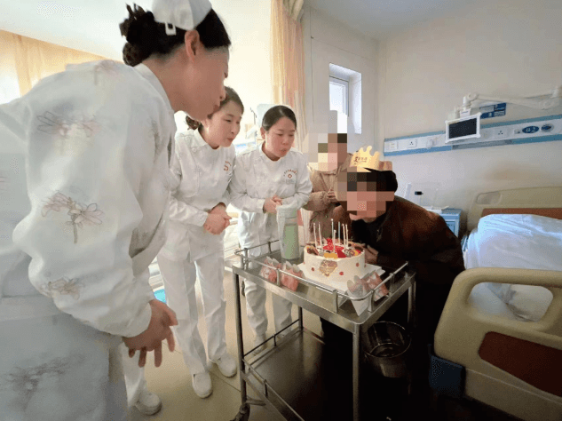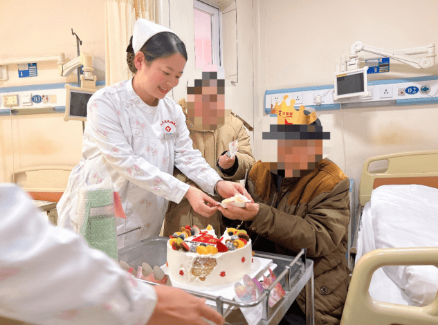 當(dāng)日早晨,醫(yī)務(wù)人員將提前為老壽星準(zhǔn)備好的生日蛋糕和手寫(xiě)的心愿卡片推到老人面前,并祝愿他福如東海、壽比南山!慶祝過(guò)后把蛋糕分發(fā)給病區(qū)的患者,讓大家一起分享這份喜悅,熱鬧的祝壽氛圍、暖暖的生日歌曲、濃濃的關(guān)懷之情,讓整個(gè)病區(qū)充滿愛(ài)的溫度。