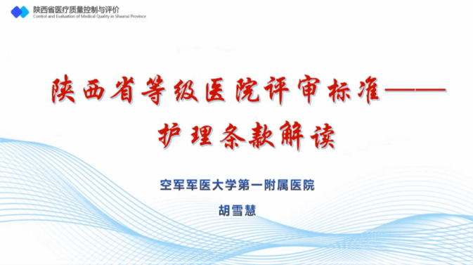 中華護(hù)理學(xué)會副理事長、西京醫(yī)院護(hù)理部胡雪慧主任詳細(xì)解讀了陜西省等級醫(yī)院評審細(xì)則中護(hù)理專業(yè)的9個責(zé)任條款,針對護(hù)理管理組織體系、護(hù)理人力資源管理、護(hù)理質(zhì)量管理與持續(xù)改進(jìn)、護(hù)理安全管理及特殊護(hù)理單元質(zhì)量管理與監(jiān)測,從護(hù)理部層面、科室層面和護(hù)士層面分別剖析了迎評準(zhǔn)備。號召護(hù)理人員深入貫徹“以評促改、以評促建、評建結(jié)合、重在改進(jìn)”的評審理念,加強(qiáng)內(nèi)涵建設(shè),完善管理、優(yōu)化流程,進(jìn)一步提高服務(wù)能力,助力醫(yī)院高質(zhì)量發(fā)展。