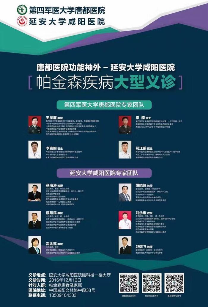 延安大學(xué)咸陽醫(yī)院——唐都醫(yī)院帕金森疾病大型義診活動將在我院隆重舉辦