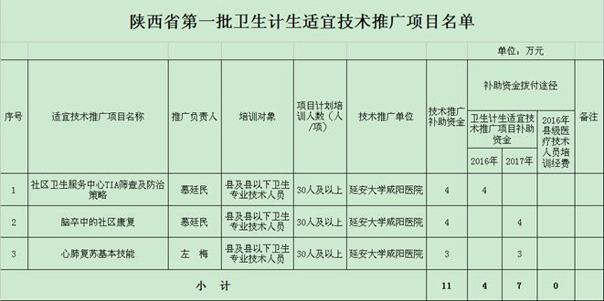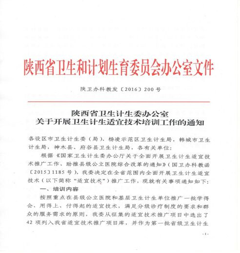 2016年12月5日,根據(jù)《陜西省衛(wèi)生計生委辦公室關(guān)于開展衛(wèi)生計生適宜技術(shù)培訓(xùn)工作的通知》(陜衛(wèi)辦科教發(fā)【2016】200號)文件精神,我院慕廷民副院長領(lǐng)銜申報的項目《社區(qū)衛(wèi)生服務(wù)中心TIA篩查及防治策略》、《腦卒中的社區(qū)康復(fù)》和心血管內(nèi)科二病區(qū)左梅主任領(lǐng)銜申報的項目《心肺復(fù)蘇基本技能》經(jīng)陜西省衛(wèi)計委審核評定,分別獲批為陜西省第一批衛(wèi)生計生適宜技術(shù)推廣項目,獲批經(jīng)費總計達11萬。本次全省共選出42個項目列入陜西省適宜技術(shù)推廣項目庫。