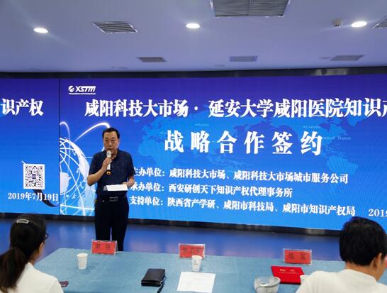 2019年7月19日上午,延安大學咸陽醫(yī)院與咸陽市科技大市場在創(chuàng)業(yè)大廈5樓簽訂知識產權戰(zhàn)略合作協議。陜西省工信廳產學研主任楊衛(wèi)剛、咸陽市科技局副局長成胤、延安大學咸陽醫(yī)院董事長李衛(wèi)軍、咸陽市科技資源統(tǒng)籌中心副主任申艷、咸陽科技大市場總經理張秋、延安大學咸陽醫(yī)院科研教學管理中心主任韓曉芳、延安大學咸陽醫(yī)院科教部副部長王紹輝等30余人出席了此次會議。延安大學咸陽醫(yī)院董事長李衛(wèi)軍代表醫(yī)院簽訂本次協議。