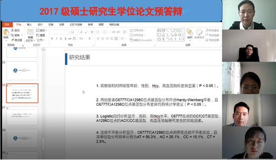 2017級研究生們通過屏幕共享和現(xiàn)場線上視頻,利用PPT以圖文并茂的形式圍繞論文的選題目的與意義、國內(nèi)外研究情況、研究方法和論文主要框架及結(jié)論等方面,對自己的畢業(yè)論文進(jìn)行了全面詳細(xì)的陳述。預(yù)答辯專家小組以嚴(yán)謹(jǐn)?shù)膶W(xué)術(shù)態(tài)度仔細(xì)聽取匯報(bào)、詳查論文格式,圍繞論文設(shè)計(jì)、方法資料、數(shù)據(jù)分析、結(jié)果展示、文獻(xiàn)引用等方面進(jìn)行了中肯細(xì)致的點(diǎn)評,指出了選用統(tǒng)計(jì)方法描述不夠精準(zhǔn)、論文格式欠規(guī)范、引用新文獻(xiàn)比例不足等通病,針對每名研究生的論文進(jìn)行針對性、啟發(fā)式的提問。研究生們認(rèn)真記錄專家們的寶貴意見及建議,并能較為準(zhǔn)確流暢地回答相關(guān)問題,現(xiàn)場學(xué)術(shù)氣氛濃厚。