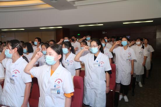 歡迎儀式上,科教部王紹輝副部長(zhǎng)代表醫(yī)院對(duì)實(shí)習(xí)生來院學(xué)習(xí)表示歡迎,并對(duì)醫(yī)院的基本情況進(jìn)行了介紹,隨后對(duì)大家在醫(yī)院的學(xué)習(xí)生活提出幾點(diǎn)寶貴的意見,希望同學(xué)們能迅速從思想上完成角色定位和轉(zhuǎn)變,更好、更快的適應(yīng)新環(huán)境,以滿腔熱情投身于實(shí)習(xí)中去,做一個(gè)文化素養(yǎng)與專業(yè)素質(zhì)兼?zhèn)涞尼t(yī)學(xué)人。隨后,學(xué)生代表陳浩帶領(lǐng)全體實(shí)習(xí)生進(jìn)行宣誓。