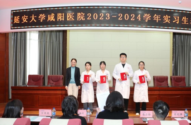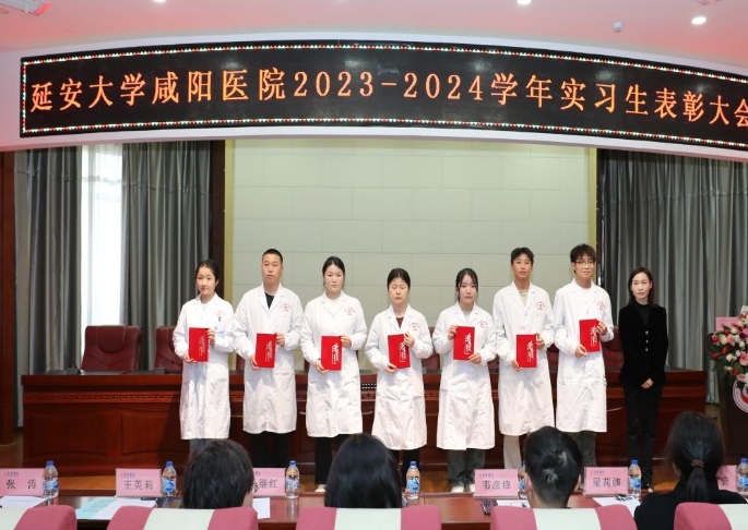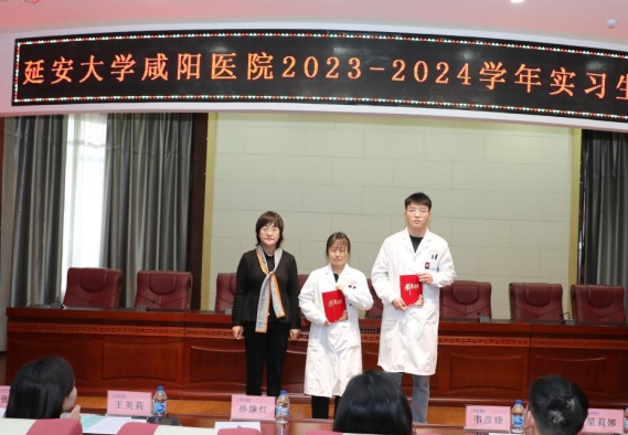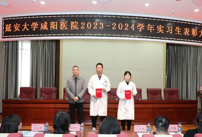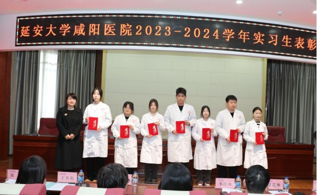 延安大學(xué)咸陽醫(yī)院韓曉芳調(diào)研員宣讀了《延安大學(xué)咸陽醫(yī)院科研教學(xué)管理中心關(guān)于表彰2023-2024學(xué)年優(yōu)秀實(shí)習(xí)生的通知》,她希望受表彰的同學(xué)珍惜榮譽(yù)、戒驕戒躁、發(fā)揚(yáng)成績、再接再厲,始終保持昂揚(yáng)的斗志,更好地發(fā)揮示范引領(lǐng)作用,其他實(shí)習(xí)生要以先進(jìn)為榜樣,勤奮務(wù)實(shí)、刻苦鉆研、銳意進(jìn)取、開拓創(chuàng)新。隨后,進(jìn)行實(shí)習(xí)生表彰。