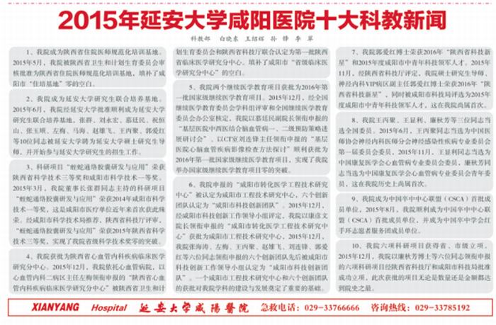 延安大學(xué)咸陽醫(yī)院院報 2016年 第一期
