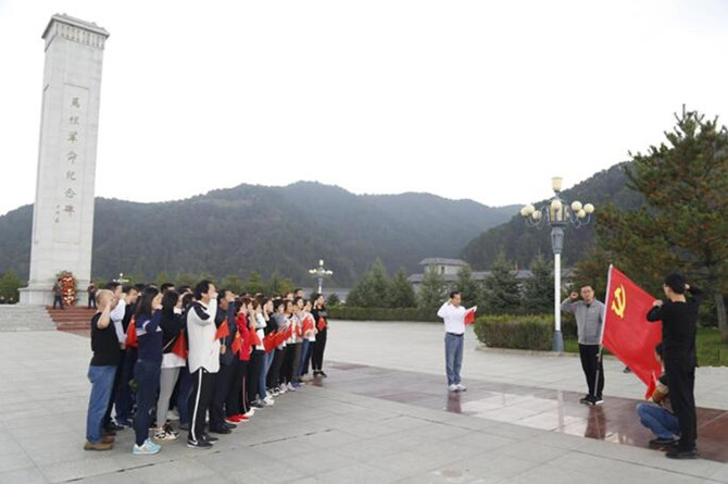 馬蘭革命紀念碑屹立于廣場中央,雄偉壯闊,直入云霄,是紀念和緬懷老一輩革命先烈們的豐碑。為增強“不忘初心、牢記使命”主題教育效果,全體黨員站立在馬欄革命紀念碑下,面對黨旗,舉行了莊嚴的宣誓儀式,重溫了入黨誓詞,承諾“為共產(chǎn)主義奮斗終身”。宣誓儀式后,各黨支部也紛紛組織黨員合影留念,高喊祖國萬歲,共產(chǎn)黨萬歲,博大的愛國、愛黨情懷被表達的淋漓盡致。