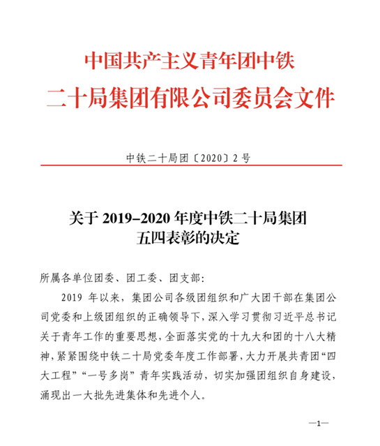 歲月如煙,流年似水。值此中國共產(chǎn)主義青年團(tuán)九十八周年之際,我院團(tuán)支部獲得“2019-2020年度中鐵二十局五四紅旗團(tuán)支部”榮譽(yù)稱號(hào);援鄂抗疫勇士張春妮同志獲得“防疫戰(zhàn)役好青年”榮譽(yù)稱號(hào);吳迪同志獲得“2019-2020年度中鐵二十局優(yōu)秀共青團(tuán)員”榮譽(yù)稱號(hào)。榮譽(yù)不僅是對(duì)我院先進(jìn)集體和優(yōu)秀個(gè)人的肯定,更是對(duì)我院一年來團(tuán)工作的肯定。