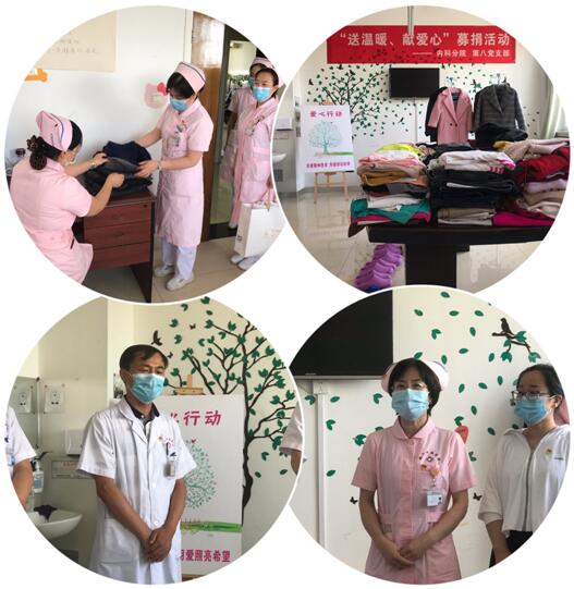首先由第八黨支部書(shū)記尚同軍致辭,全體黨員同志能夠積極響應(yīng)延安大學(xué)咸陽(yáng)醫(yī)院黨支部“黨員示范崗”活動(dòng)號(hào)召,此次捐助是第八黨支部全體黨員的一片心意,也是我們以實(shí)際行動(dòng)踐行“黨員示范崗”活動(dòng),進(jìn)一步轉(zhuǎn)變工作作風(fēng),提升醫(yī)療服務(wù)效能的具體體現(xiàn)。接下來(lái)陳英總護(hù)士長(zhǎng)宣布捐贈(zèng)儀式開(kāi)始,本次活動(dòng)內(nèi)科綜合辦給予高度重視及支持,陳英總護(hù)士長(zhǎng)做了詳細(xì)周到的安排,并強(qiáng)調(diào)要充分尊重捐助對(duì)象,所有捐助衣物均制定了接受范圍及檢查標(biāo)準(zhǔn),衣服雖是舊的,但每一件都洗的干干凈凈,疊的整整齊齊,按照季節(jié)進(jìn)行歸類(lèi),統(tǒng)一進(jìn)行消毒,這些細(xì)節(jié)也體現(xiàn)著全體內(nèi)科病院職工的“衣”份愛(ài)心,“衣”份溫暖。捐贈(zèng)現(xiàn)場(chǎng)彌漫著濃濃的愛(ài)心,溫暖無(wú)限,當(dāng)患者穿上所贈(zèng)衣物時(shí),現(xiàn)場(chǎng)所有人員臉上洋溢著幸福的笑容。