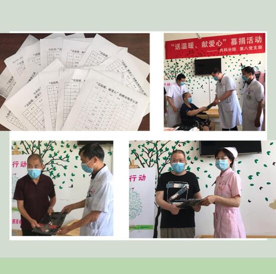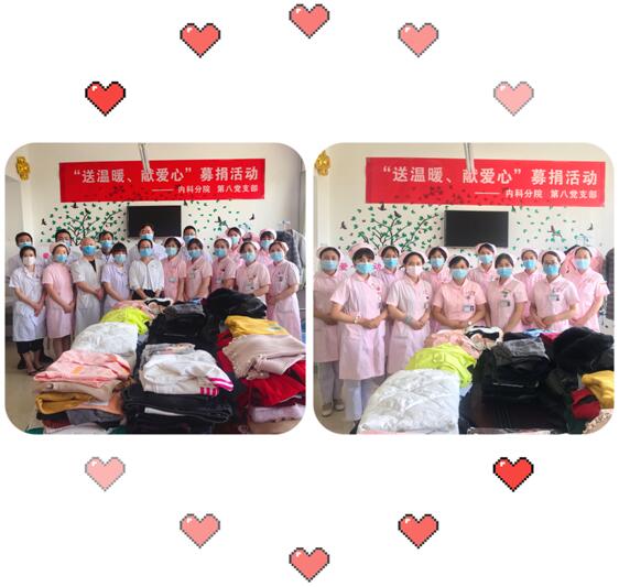 精神科胡曉科主任向大家的善舉致以誠(chéng)摯的謝意,表示此次捐贈(zèng),溫暖了每一顆心靈,并倡導(dǎo)全院人員繼續(xù)關(guān)注和幫助社會(huì)弱勢(shì)群體。贈(zèng)人玫瑰,手有余香,一件衣物送出一份溫暖,一顆愛(ài)心帶來(lái)一份感動(dòng),奉獻(xiàn)愛(ài)心,傳播正能量。捐衣物不僅可以使舊物得到循環(huán)利用,更重要的是可以讓需要幫助的人得到關(guān)愛(ài)與溫暖,感受到社會(huì)的關(guān)懷,使他們以積極樂(lè)觀的心態(tài)去面對(duì)生活,早日康復(fù),回歸家庭,回歸社會(huì)。延安大學(xué)咸陽(yáng)醫(yī)院第八黨支部將繼續(xù)以“黨員示范崗”活動(dòng)為契機(jī),營(yíng)造學(xué)先進(jìn)、趕先進(jìn)、爭(zhēng)先進(jìn)的濃厚氛圍,推動(dòng)“黨員示范崗”活動(dòng)常態(tài)化,為實(shí)現(xiàn)我院跨越式發(fā)展的奮斗目標(biāo)做出更大貢獻(xiàn)!