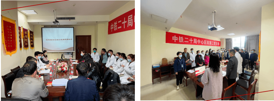 2023年3月14日下午,中鐵二十局集團(tuán)有限公司中心醫(yī)院第二黨支部在超聲醫(yī)學(xué)科示教室召開組織生活會并開展民主評議黨員活動。參加會議的有黨委委員、院長助理劉連鋒,支部書記張軍強(qiáng)及全體支委、黨小組長和黨員,黨委委員、院長助理劉連鋒以普通黨員身份參加,會議由支部委員王英莉同志主持,支部黨員應(yīng)到58名,實(shí)到53名。