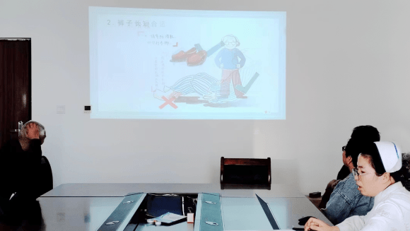 老年人跌倒死亡率隨年齡增加急劇上升。跌倒除了導致老年人死亡外,還導致大量的殘疾,影響老年人的身心健康。劉文靜護長通過鮮活的案例向大家講解了跌倒的危害,讓患者真正重視跌倒防范,讓家人放心,安心!
