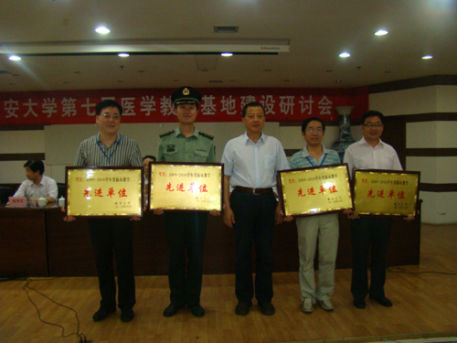 開幕式上,出席會(huì)議的省衛(wèi)生廳、寶雞市衛(wèi)生局領(lǐng)導(dǎo)和延安大學(xué)領(lǐng)導(dǎo)為臨床教學(xué)先進(jìn)單位、優(yōu)秀管理干部、指導(dǎo)教師、臨床教師講課比賽獲獎(jiǎng)?wù)?、?yōu)秀畢業(yè)論文指導(dǎo)教師等獲獎(jiǎng)單位和個(gè)人頒了獎(jiǎng)。我院被評(píng)為“臨床教學(xué)先進(jìn)單位”、并獲“第二屆延安大學(xué)臨床教學(xué)講課比賽優(yōu)秀組織獎(jiǎng)”,吳棟梁副院長(zhǎng)、韓曉芳副部長(zhǎng)分別評(píng)為優(yōu)秀指導(dǎo)老師、優(yōu)秀管理干部,王治全主任獲得講課比賽二等獎(jiǎng),沈建華主任、來海鷗責(zé)獲得三等獎(jiǎng)。