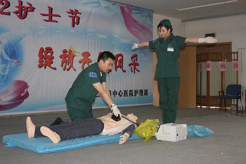 隨后,代表我院參加咸陽市總工會和咸陽市衛(wèi)生局舉辦崗位技能競賽中獲得好成績的選手同麗娜、王玉霞、楊亞會配合急診科醫(yī)師分別進行了無菌技術操作、安全靜脈留置針和成人基礎生命支持的演示。她們優(yōu)美、嫻熟、精湛的操作和無縫隙合作,讓全場三百多名護士情不自禁起立觀看,并贏得陣陣熱烈掌聲。