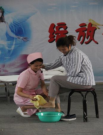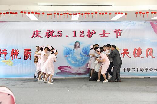 操作演示還沒結束,各系統(tǒng)總護士長帶著她們早已準備好的節(jié)目已經(jīng)候場了。神內(nèi)、神外帶來的音樂情景劇《天使的翅膀》,為我們展示了護士平凡工作中流露出的愛與奉獻,他們的故事可能沒有蕩氣回腸、感人肺腑的情節(jié),有的只是一些日積月累的繁瑣,可正是他們用翅膀托起生命的藍天。心系、內(nèi)系的護士們則讓我們在輕松詼諧的氣氛中學到了糖尿病人的自我管理,感受到了白衣天使的多才多藝,體會到了自開展優(yōu)質護理服務工作以來,我們與《病房來了新患者》的溝通能力所得到的提升。外系的情景劇《真情》則講述了我們的白衣天使如何讓一個在車禍中失去父母,同時又失去下肢的愛跳舞的女孩重拾對生活的信心。當配樂“我看到爸爸媽媽就這么走遠,留下我在這陌生的人世間”響起時,臺下的觀眾們頓時濕了眼眶。期間,泌尿外科劉航主任與婦產(chǎn)科王磊護士長深情對唱《因為愛情》更是引來各種掌聲,喝彩聲和尖叫聲。神內(nèi)、神外的年輕護士長們,更是為我們帶來了節(jié)奏感超強的《洗手舞》,讓我們在欣賞的同時不忘專業(yè)及規(guī)范的六步洗手法。護士張紅帶領參會護士和領導們一起進行的游戲《愛的抱抱》更是將氣氛推向了高潮……濃濃的情,動人的心,同事之間的愛,領導對下屬的情,放下矜持,放下羞澀,放下距離,敞開胸懷,大家在愛的懷抱里度過了個愉快的節(jié)日!