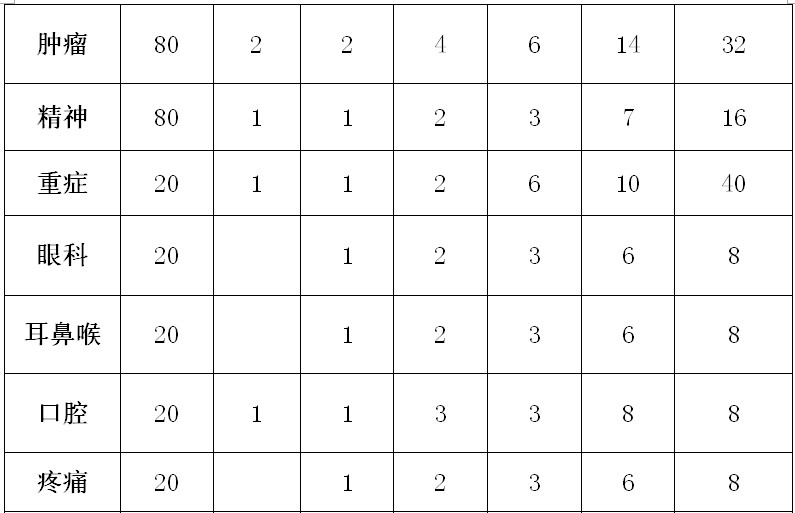 (2)腫瘤內(nèi)科:設(shè)置床位40張(其中10張劃歸放療科使用),內(nèi)含搶救室、ICU室,配備醫(yī)師7名(主任醫(yī)師1名、副主任醫(yī)師1名、主治醫(yī)師2名、醫(yī)師3名),護(hù)士16名。