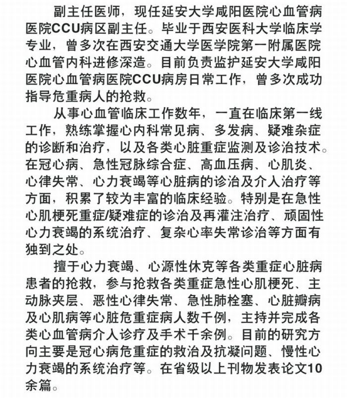 咸陽醫(yī)院心血管病醫(yī)院 心臟內(nèi)科專家團(tuán)隊 連載