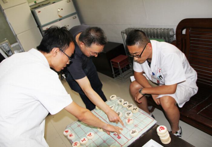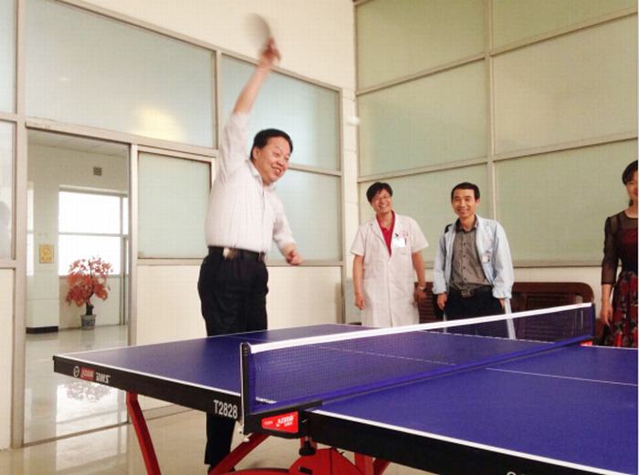 當日下午,我院職工文化活動中心開業(yè)典禮在我院醫(yī)技樓二樓西側(cè)隆重舉行。此前6月3日,董事長張群、院領(lǐng)導(dǎo)康彥文、曹俊恒、呂輝、姚曉峰、祝恒山等在團委人員陪同下前往活動中心進行指導(dǎo),參觀了棋牌室、乒乓球室、臺球室、舞蹈房、信息室,張董事長和曹院長在參觀乒乓球室時,現(xiàn)場與職工進行了熱身競技,還在臺球室一展風(fēng)采,活躍了職工文化活動中心的氣氛,也給院團委工作人員鼓足了干勁,為職工樹立了榜樣。