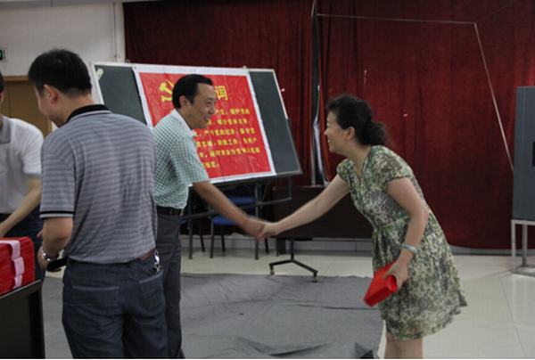 黨委書記李衛(wèi)軍為優(yōu)秀黨支部頒發(fā)獎杯及獎狀