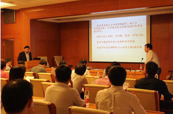“秋高氣爽、陽光燦爛”,2014年9月20日,由咸陽市醫(yī)學(xué)會放射學(xué)分會主辦,我院承辦的咸陽市第四屆放射學(xué)讀片會暨延安大學(xué)咸陽醫(yī)院第12屆醫(yī)技交流沙龍活動在我院心血管病醫(yī)院20樓多功能廳順利舉行,大會由我院CT室劉連鋒主任主持,延安大學(xué)咸陽醫(yī)院張海濤業(yè)務(wù)副院長致歡迎詞,咸陽市放射學(xué)會副主任委員兼秘書長賀朝主任致詞,參會的有本院張海濤副院長、質(zhì)控辦彭永波主任、院辦公室李鵬副主任、郭芝瑞主管、放療科尹永信主任、放射科門學(xué)軍主任、檢驗科孫繼紅副主任、于建平副主任、功能科吳建軍主任、腦研所肖曼麗主任、心內(nèi)VIP王顯利主任、麻醉科王志濤主任、腦10科張東亞主任、腦15科郝鋒利主任及臨床、醫(yī)技的大多醫(yī)師,來自咸陽地區(qū)的放射屆老前輩呂干民老師、陜中一附院賀太平主任、于勇副主任、陜中二附院賀朝主任、劉主任、咸陽市中心醫(yī)院馬寧主任、孟智輝主任,咸陽市第一人民醫(yī)院的寇主任、楊主任、核工業(yè)215醫(yī)院張主任及彩虹醫(yī)院的張主任及其咸陽市區(qū)及部分縣區(qū)140余名放射專業(yè)及部分臨床人員參加了交流會議,從2:20開始由咸陽市6家大型三級醫(yī)院帶來9份病例,每位匯報人開始匯報病例,現(xiàn)場發(fā)言控制在30分鐘內(nèi)。2點20分首先由核工業(yè)215醫(yī)院張主任帶來1份2組病例右側(cè)顳極表皮樣囊腫、右眼手術(shù)硅酮油破入第四腦室;陜中二附院的3份病例分別是左側(cè)膈疝、雙肺炎癥、胰體脾動脈瘤;咸陽市中心醫(yī)院MRI室秦琛琛匯報的鞍區(qū)病變顱咽管瘤、灰結(jié)節(jié)錯構(gòu)瘤,CT室的食道鱗狀細(xì)胞癌;陜中一附院帶來的4組不同病理類型的肺癌,咸陽市第一人民醫(yī)院帶來的盆腔及腸系膜結(jié)核;最后由我院張利安醫(yī)生為大家?guī)淼囊唤M4種不同病理類型的腦膜瘤;分別為纖維型、微囊型及過渡型,大家發(fā)言積極,會場氣氛熱鬧,劉連鋒主任就每組CT、MRI不同表現(xiàn)分析與常規(guī)腦膜瘤的不同,最后分析診斷要點及鑒別診斷;來自各醫(yī)院的主任及年輕醫(yī)師發(fā)言積極、氣氛活躍,更新了廣大放射人員的知識視野,拓寬了臨床影像診斷思路,擴(kuò)大專業(yè)知識范圍,為更好服務(wù)臨床患者夯實了理論基礎(chǔ)。最后由放射屆前輩呂干民老師做了大會總結(jié),他認(rèn)為20局中心醫(yī)院發(fā)展迅速、令人羨慕,這次學(xué)術(shù)會組織的有力,參會人員歷屆最多,不僅拓展了影像診斷思路、而且提高了影像診斷水平,是一次咸陽市高水平的學(xué)術(shù)會議;會后組織參會人員參觀了雙源CT及3.0T磁共振,同仁們一致認(rèn)為醫(yī)院對我們醫(yī)技科室配置高端設(shè)備、舒適環(huán)境表示贊許。