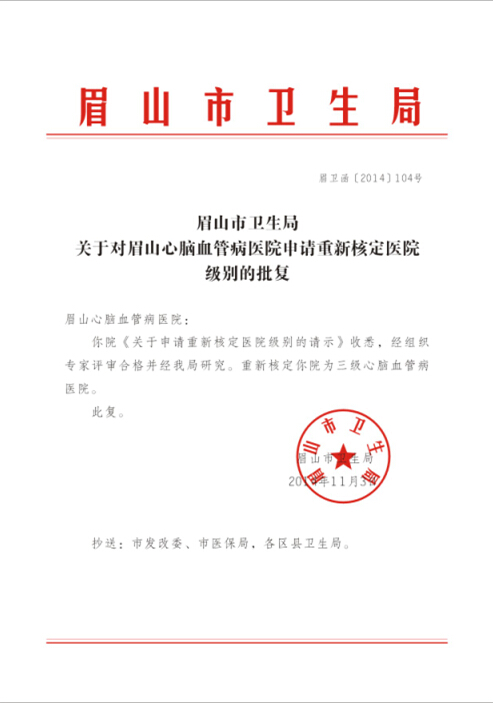 熱烈祝賀眉山心腦血管病醫(yī)院被核定為三級(jí)醫(yī)院