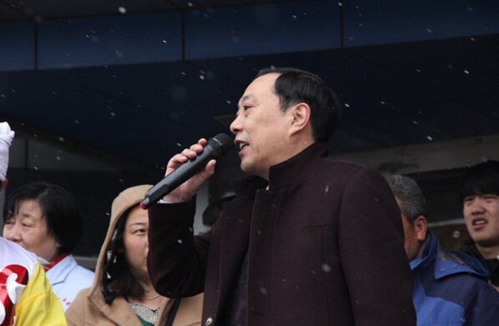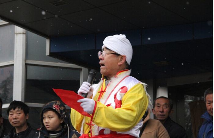 秧歌隊(duì)領(lǐng)隊(duì)宣讀元宵賀詞,送上對醫(yī)院發(fā)展美好的祝愿。
