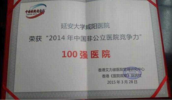 熱烈祝賀延安大學(xué)咸陽醫(yī)院被評為全國百強民營醫(yī)院第二十二名